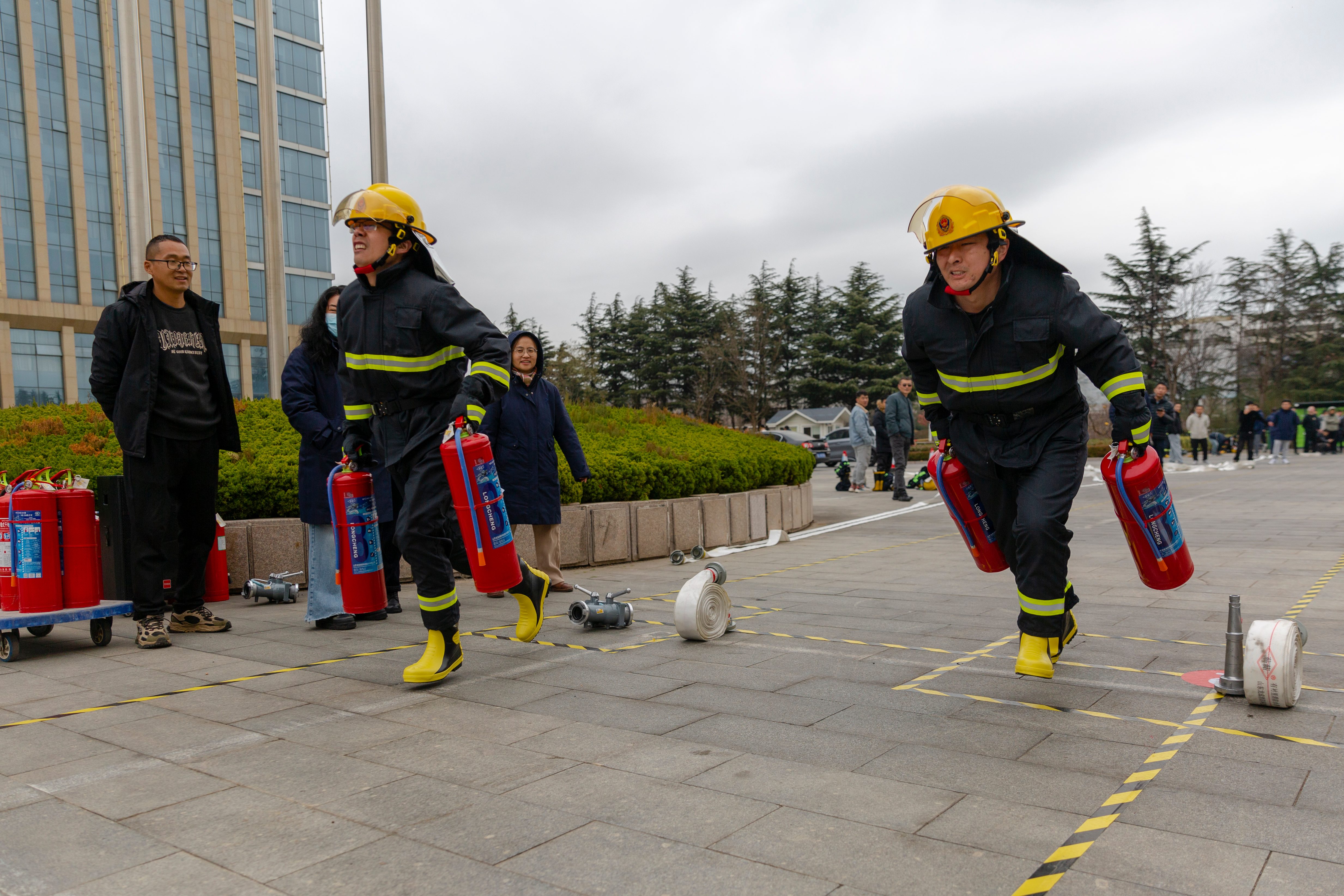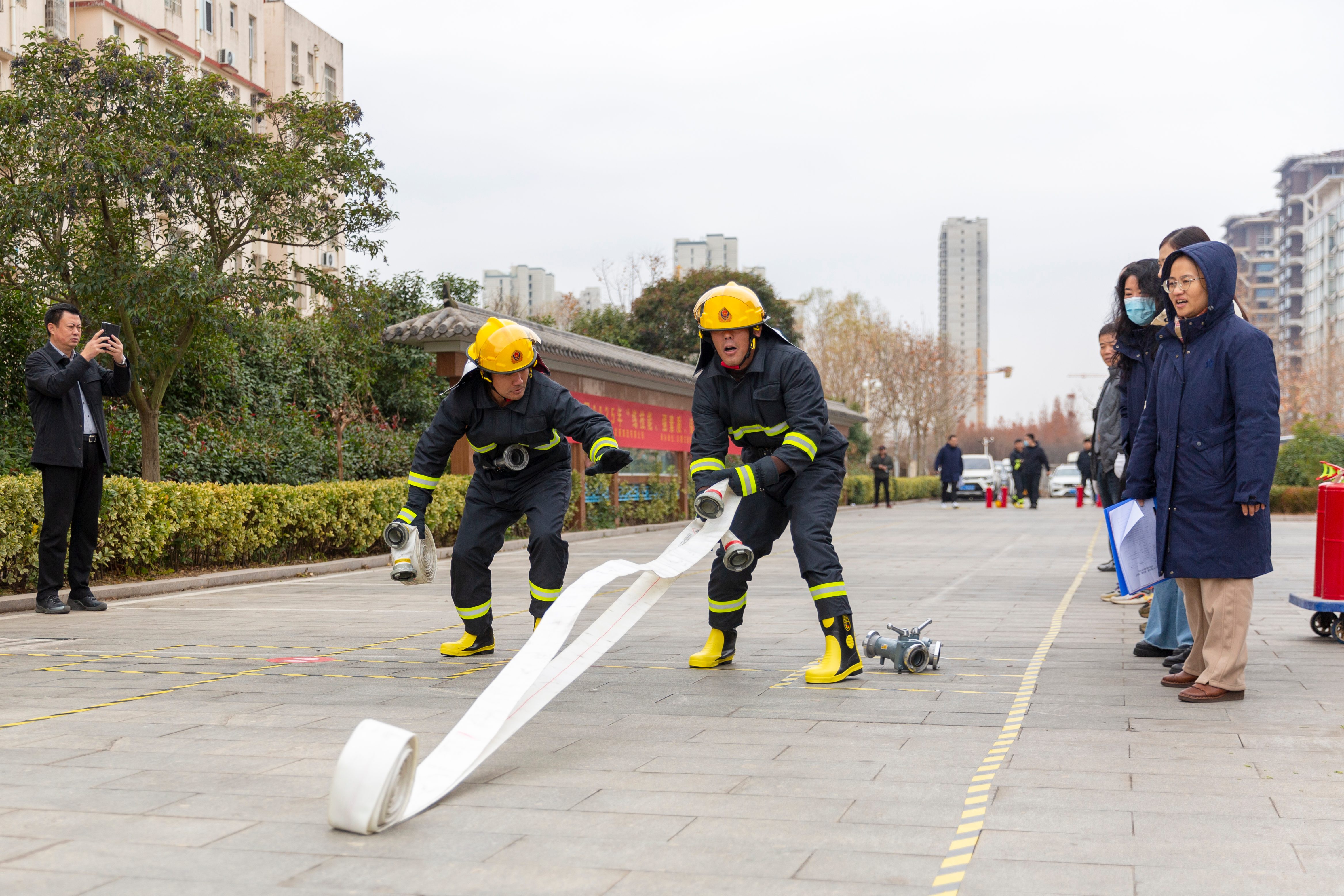 本次競賽聚焦實戰(zhàn)化技能比拼,設(shè)置消防防護裝備穿戴、滅火器快速轉(zhuǎn)運、水帶連接實操等關(guān)鍵考核環(huán)節(jié),全方位檢驗參賽隊員的應(yīng)急處置能力與協(xié)同作戰(zhàn)水平。競賽現(xiàn)場,隨著裁判一聲令下,交建集團參賽隊員反應(yīng)迅速、動作嫻熟。第一組隊員準確快速穿戴防護裝備,攜滅火器快速奔赴指定地點,舉手示意干脆利落;第二組隊員接力而上,水帶甩開、接口對接、水槍連接一氣呵成,整套動作規(guī)范流暢、銜接緊密。最終,團隊以全場最短總用時脫穎而出,將冠軍收入囊中。